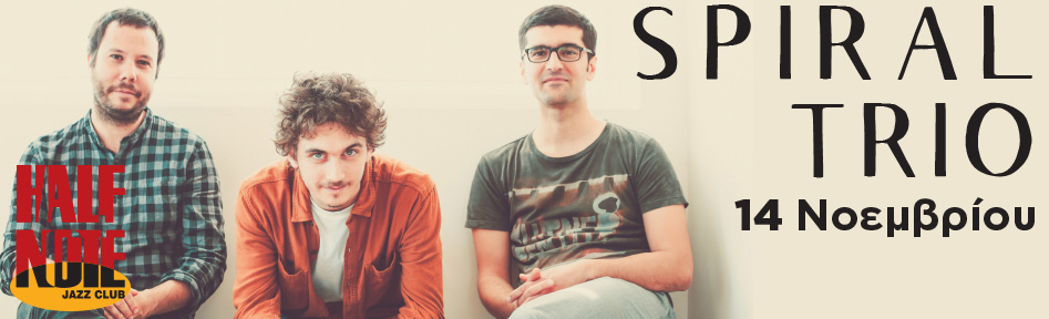 Με νέο υλικό που θα συμπεριληφθεί στον επερχόμενο δίσκο του, το Spiral Trio θα πραγματοποιήσει την πρώτη του εμφάνιση στην Αθήνα για το φετινό χειμώνα, στο Half Note Jazz Club στις 14 Νοεμβρίου. Το Spiral Trio είναι από τα σημαντικότερα groups τις Ελληνικής Jazz. Μετρά ήδη 7 χρόνια παρουσίας σε σκηνές και φεστιβάλ της Ελλάδας και τις υπόλοιπης Ευρώπης και μια δισκογραφική κυκλοφορία (Spiral Trio, ANKh 2017).